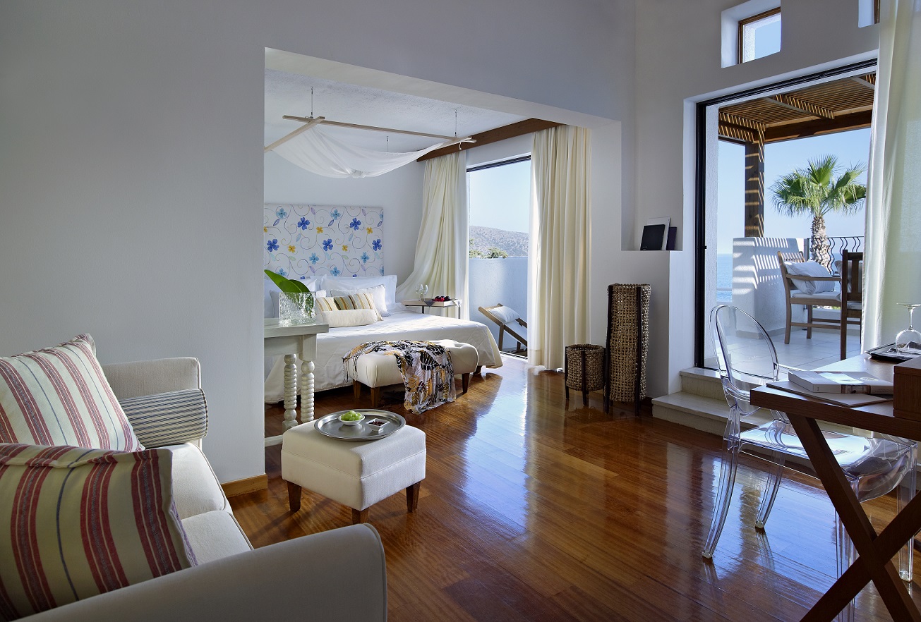 Deluxe Junior Suite & Suite Sea View: отличается от Seafacing Bungalow Style Room наличием гостиной открытого плана (или отдельной гостиной), отдельной душевой кабины (в номерах Suites), меблированного балкона или террасы с видом на залив Мирабелло. В некоторых номерах категории Deluxe Junior Suite проводится реновация, которая будет закончена в конце марта 2014 года.