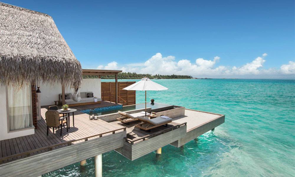 15 номеров Water Villa (240 м2; макс. 2 чел.). Водные виллы, идеально подходящие для романтического отдыха. Просторная спальня, ванная комната с ванной и душем. Терраса с зоной отдыха, бассейном-каскадом (длина – 12.5 м), душем на открытом воздухе, обеденной зоной и прямым спуском в океан. Часть вилл выходит на сторону лагуны, часть – на океан, риф.
